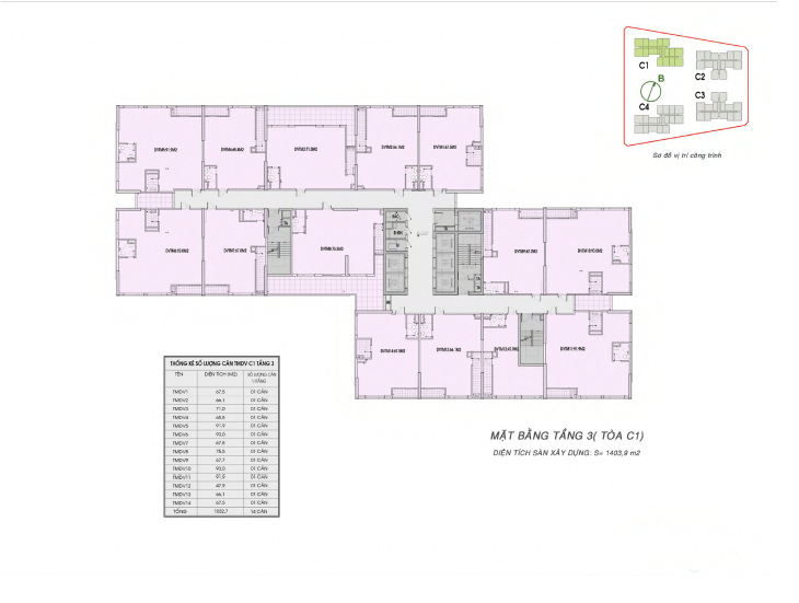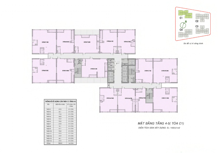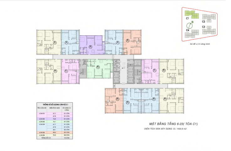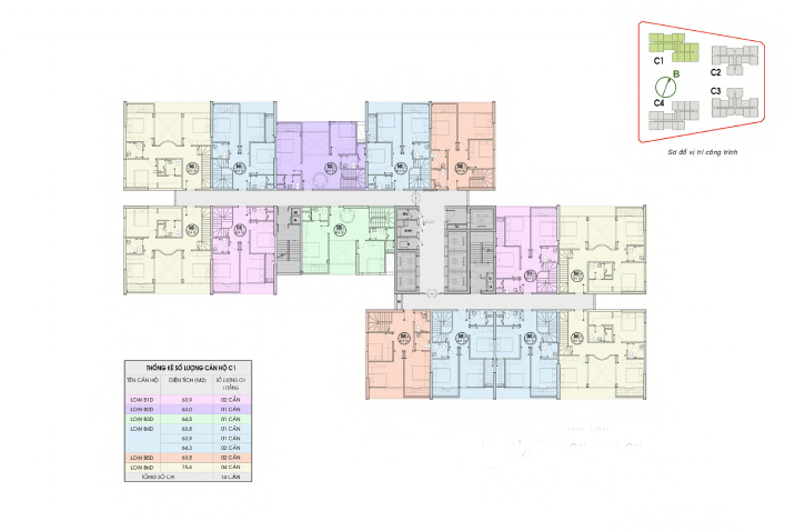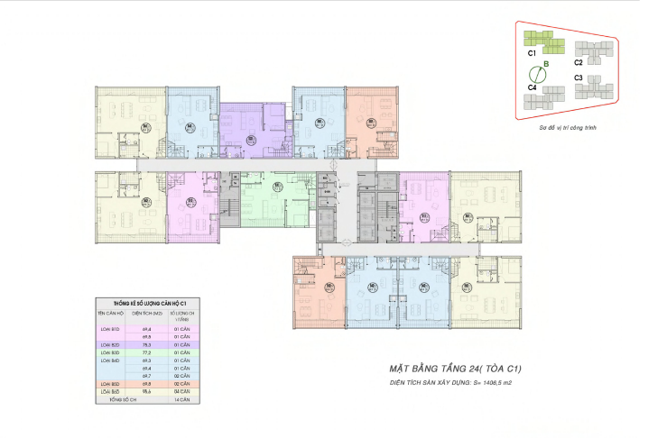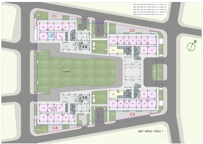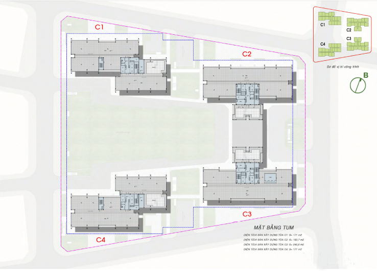 • Quy mô: 4 tòa chung cư cao cấp: C1, C2, C3, C4